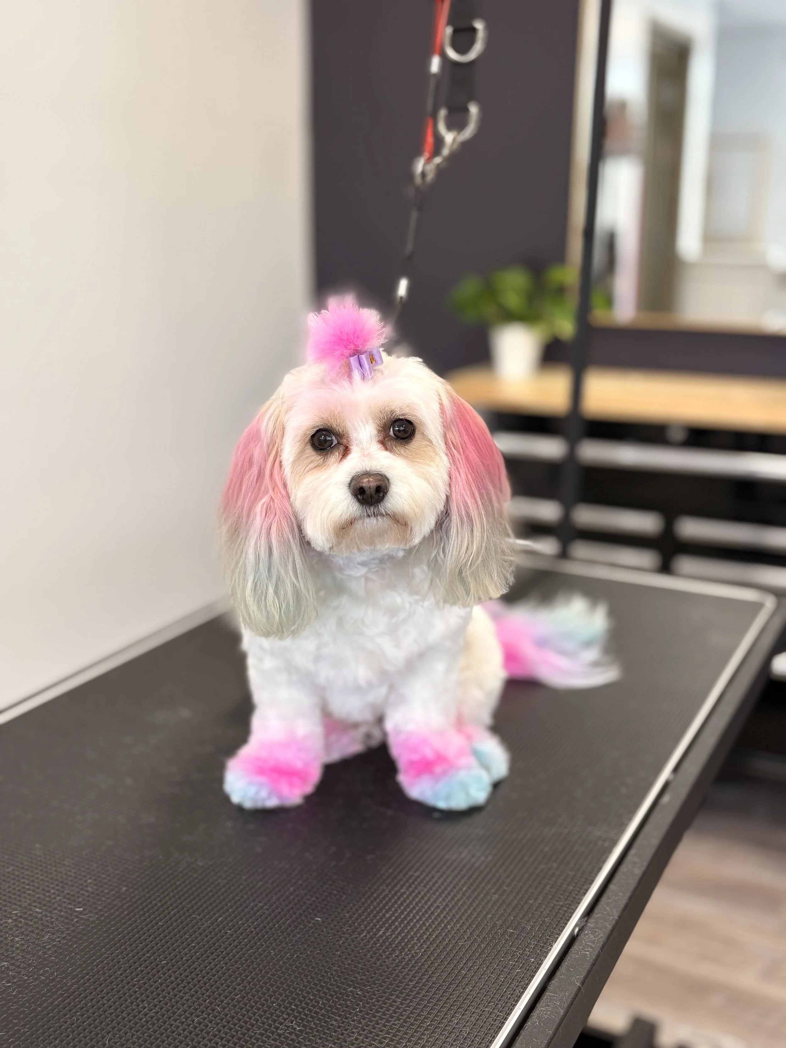 Transform your pup’s look with our vibrant air-brush color\dye at Two Paws Up Pet Salon!